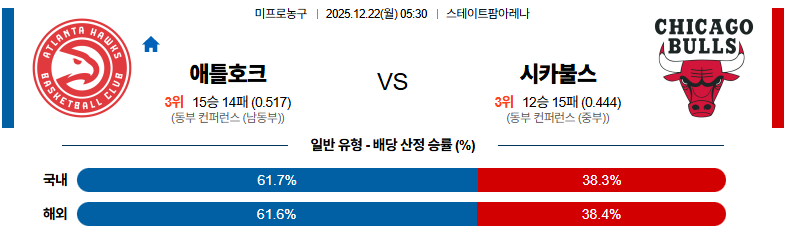 12월22일 애틀랜타:시카고 NBA 분석 및 예측