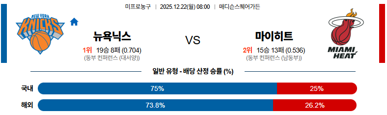 12월22일 뉴욕:마이애미 NBA 분석 및 예측
