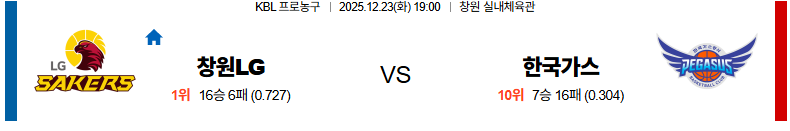 12월23일 창원LG:대구가스공사 KBL 분석 및 예측