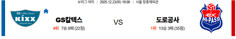 12월23일 GS칼텍스:한국도로공사 V리그(여) 분석 및 예측