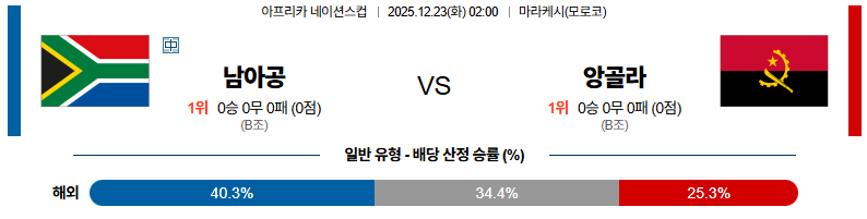 12월23일 남아공:앙골라 네이션스컵 분석 및 예측