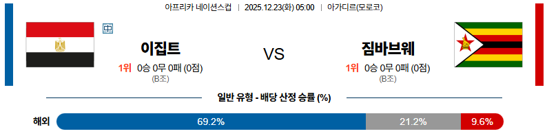 12월23일 이집트:짐바브웨 네이션스컵 분석 및 예측