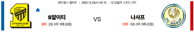 12월24일 알이티하드:나사프카르시 AFC챔피언스리그 분석 및 예측