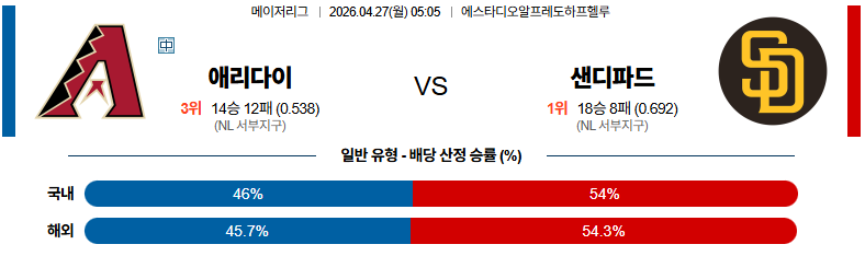 04월27일 애리조나:샌디에이고 MLB 분석 및 예측