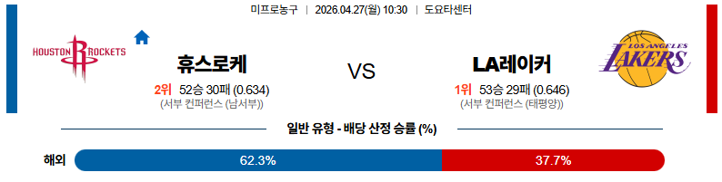 04월27일 휴스턴:LA레이커스 NBA 분석 및 예측