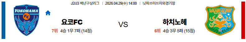 04월29일 요코하마FC:하치노헤 J리그백년구상리그 분석 및 예측
