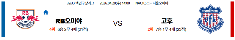 04월29일 오미야:반포레고후 J리그백년구상리그 분석 및 예측