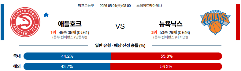 05월01일 애틀랜타:뉴욕 NBA 분석 및 예측