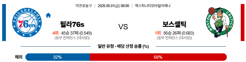 05월01일 필라델피아:보스턴 NBA 분석 및 예측