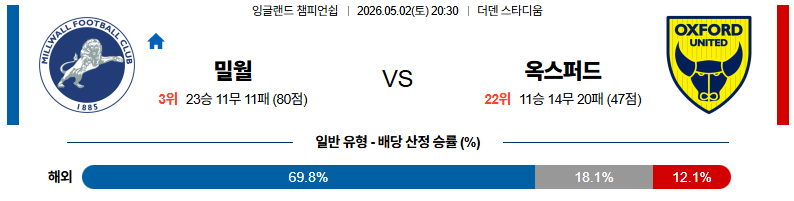 05월02일 밀월:옥스퍼드 잉글랜드챔피언쉽 분석 및 예측