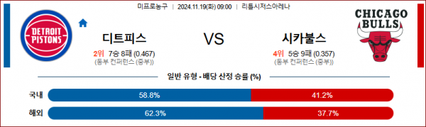 11월 19일 NBA 디트로이트 시카고 미국프로농구분석 스포츠분석
