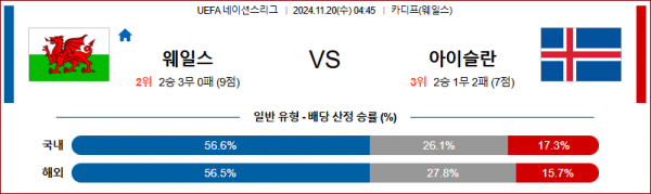 11월 20일 UEFA 네이션스리그 웨일스 아이슬란드 해외축구분석 스포츠분석 > 픽게시판