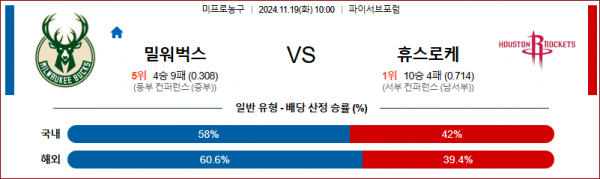 11월 19일 NBA 밀워키 휴스턴 미국프로농구분석 스포츠분석