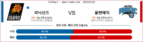 11월 19일 NBA 피닉스 올랜도 미국프로농구분석 스포츠분석