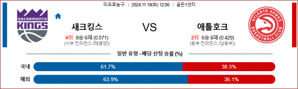 11월 19일 NBA 새크라멘토 애틀란타 미국프로농구분석 스포츠분석