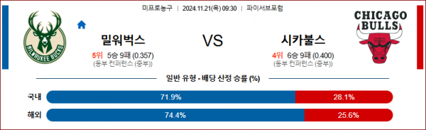 11월 21일 NBA 밀워키 시카고 미국프로농구분석 스포츠분석