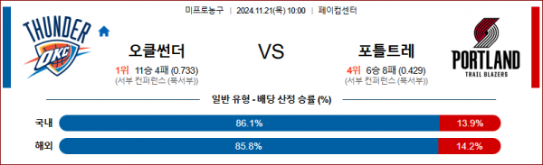 11월 21일 NBA 오클라호마 포틀랜드 미국프로농구분석 스포츠분석 > 픽게시판