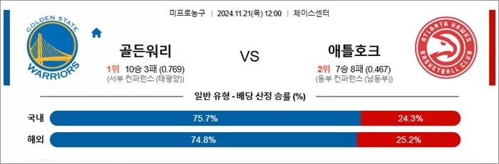 • 핵심 변수: 골든 스테이트의 뛰어난 외곽 슈팅 능력과 애틀랜타의 트레 영 중심의 공격이 맞붙는 경기입니다. 골든 스테이트가 얼마나 애틀랜타의 공격을 제어하고, 자주 빠른 전환 공격을 시도할 수 있을지가 승패를 결정지을 중요한 변수입니다.