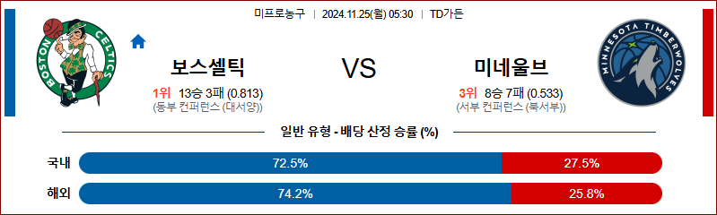 11월 25일 05:30 NBA 보스턴 미네소타 > 픽게시판