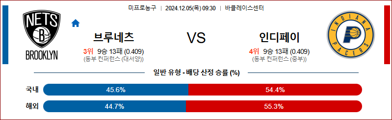 득점력이 떨어지고 있는 브루클린과 백투백 원정에서 야투 효율성이 떨어졌던 인디애나가 된다는 것을 언더&오버 게임에 반영해야 한다.