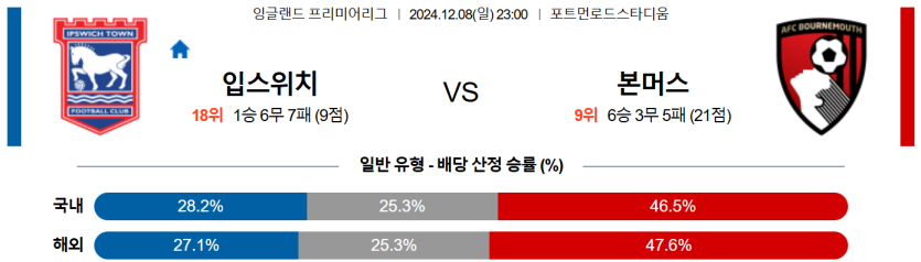 12월 8일 23:00 EPL 입스위치 본머스