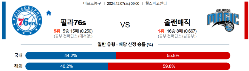 12월 7일 09:00 NBA 필라델피아 올랜도