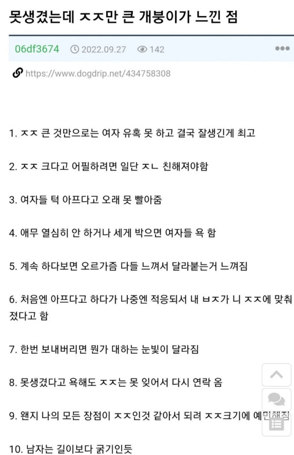 못생겼는데 ㅈㅈ만 큰 남자가 느낀 점