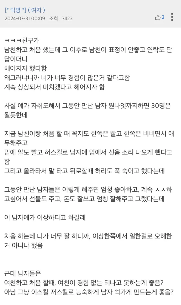 ㅅㅅ잘해서 걸레같다고 차인 여자