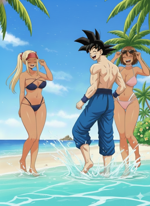 이장면에 손오공을 추가해서 여자애들과 노는 장면을 그려줘