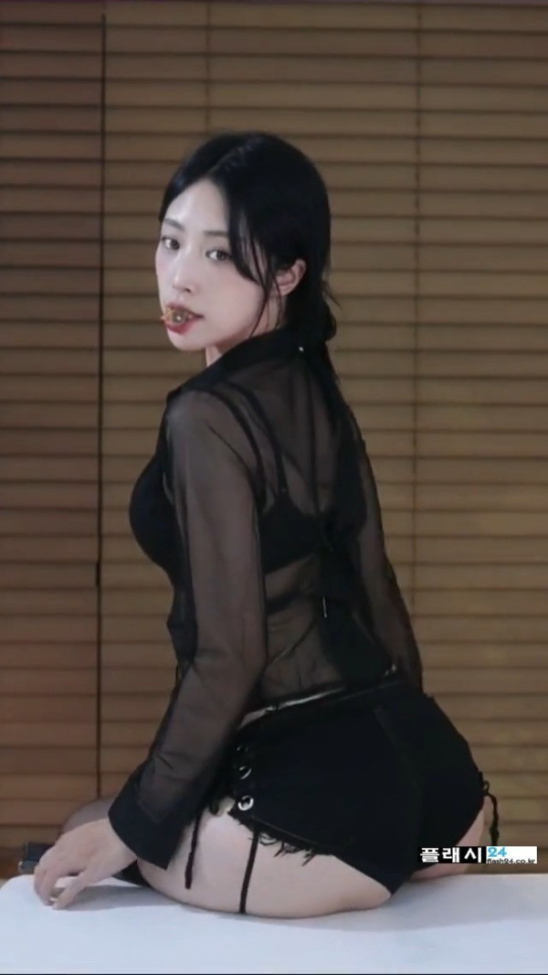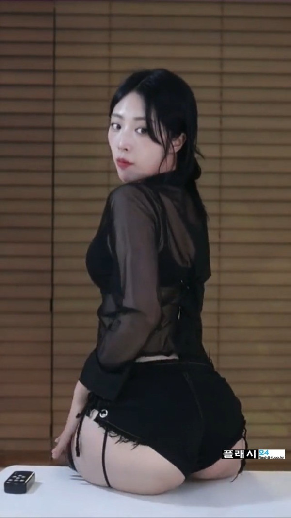 걸터 앉은 네린 핫팬츠 뒤모습