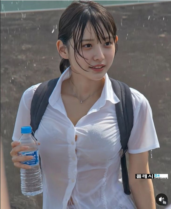 비에 젖은 여학생