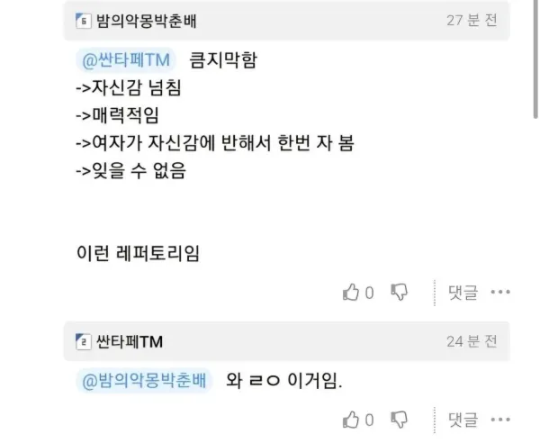 [자유게시판] 여농핵오바네요 쫄깃쫄깃 ㅋ2025-12-27