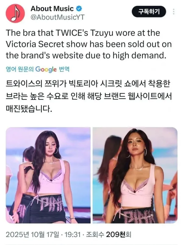 빅토리아 시크릿 쇼 참여했던 쯔위 인생 노출