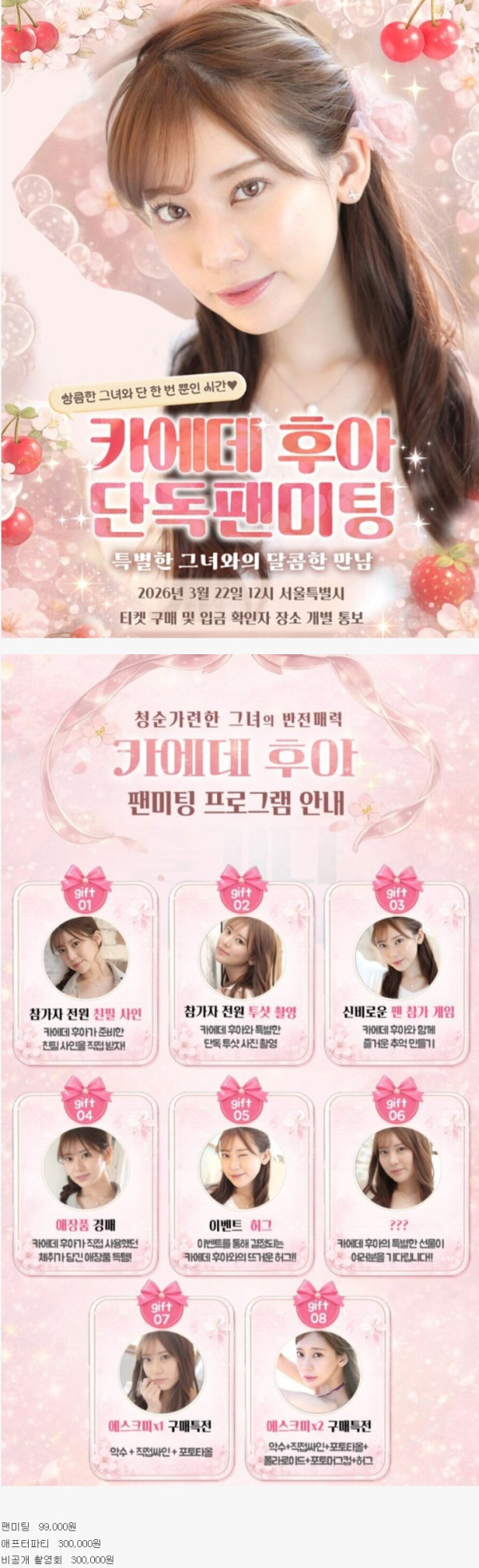 올해 3월 카에데후아 팬미팅 가격
