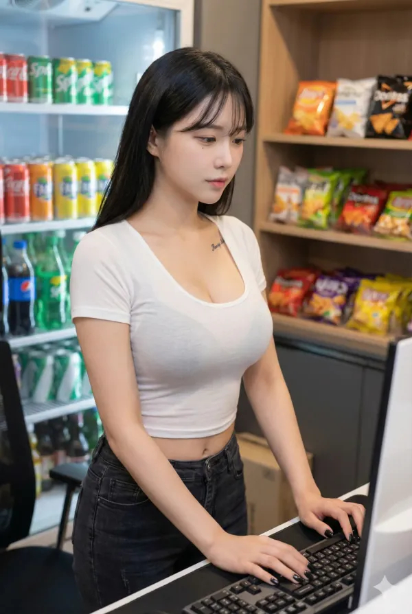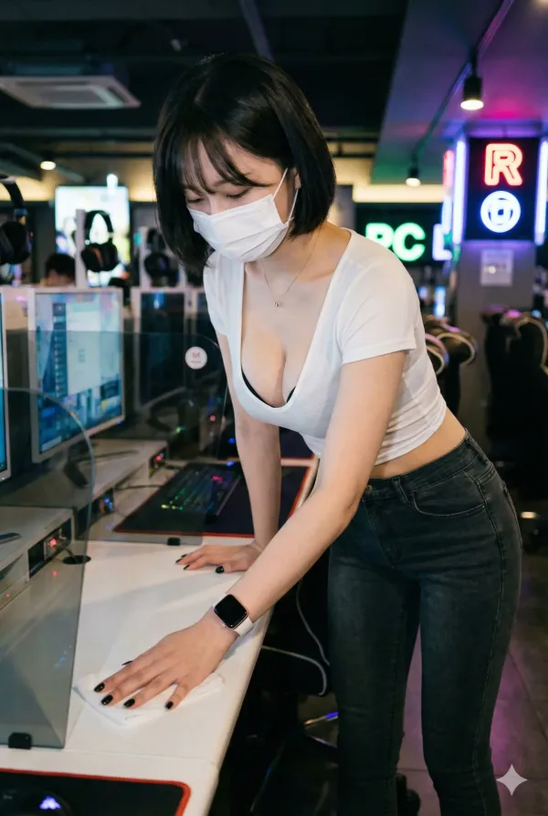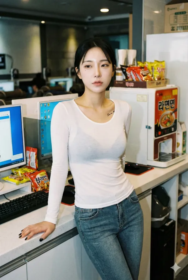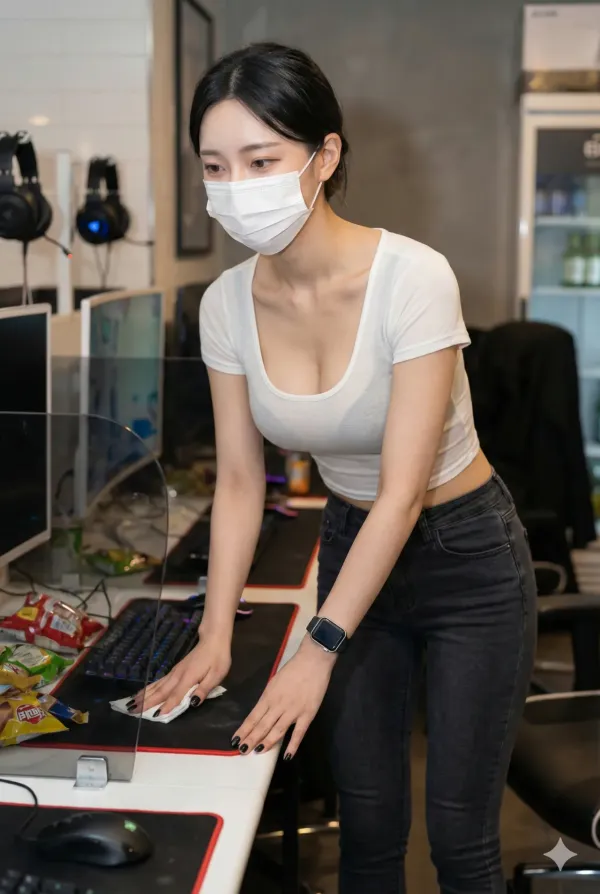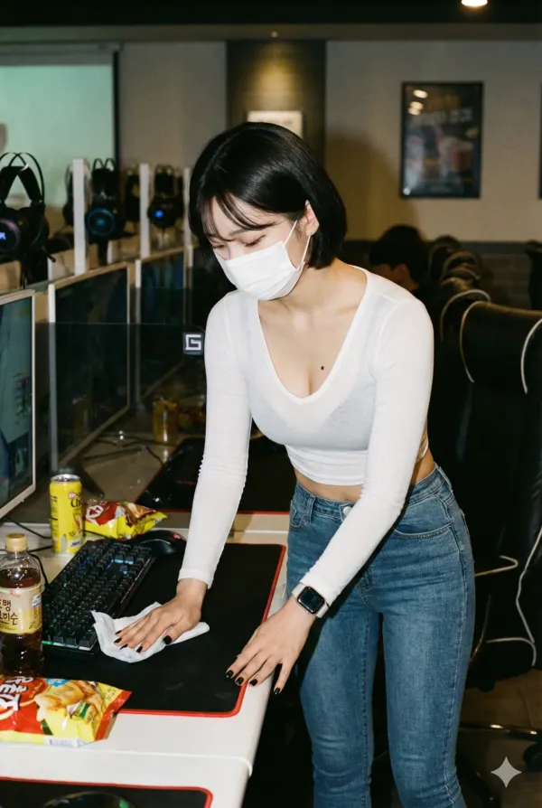 ai야 PC방에서 일하는 눈나들 그려줘
