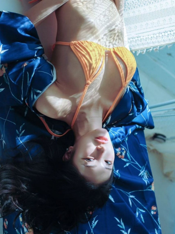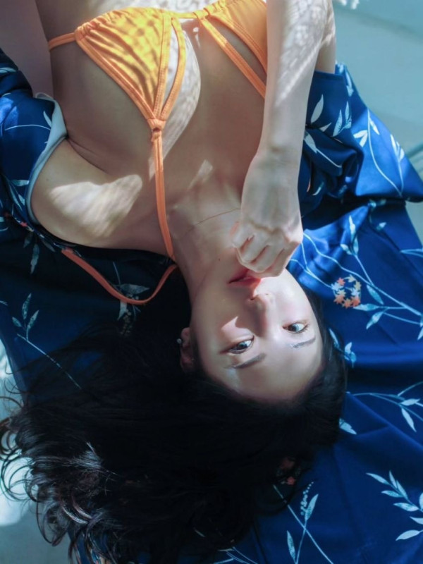 주빈 주황 형광 수영복 핫바디