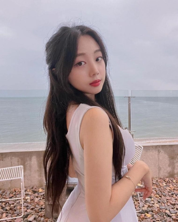 트위치 스트리머 정다별이 하얀 비키니 물에 젖은 가슴골