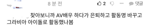 현재 일본에서 화제인 그라비아 아이돌의 발언 승냐미 승냐미님의 홈 승냐미님의 홈 2026-04-29 20:16 25 0 0 목록 본문 AV배우 하다가 은퇴하고 활동명 바꾸고 그라비아 아이돌로 활동했다고 함 0 로그인 후 추천하실 수 있습니다. 승냐미 승냐미님의 홈 승냐미님의 홈 회원등급 : 골드 / Level 42 포인트 983,033 경험치 667,900 [레벨 42] - 진행률 71% 가입일 2024-02-25 22:17:00 서명 미입력 자기소개 미입력 글쓴이의 최신글 글쓴이의 최신댓글 [자유게시판] 보증사이트들 돌발 스케줄 떴네요 2026-04-19 [후기게시판] 힝...알트벳 2026-04-12 [자유게시판] 그래도 국야있으니까 2026-03-15 [유머/이슈] 딸에게 "사랑해"라고 써달라고 해봤다 2024-04-23 [유머/이슈] 귀여운 소시지빵 만들기 2024-04-22 [자유게시판] 노답요 2026-04-22 댓글목록0 등록된 댓글이 없습니다.