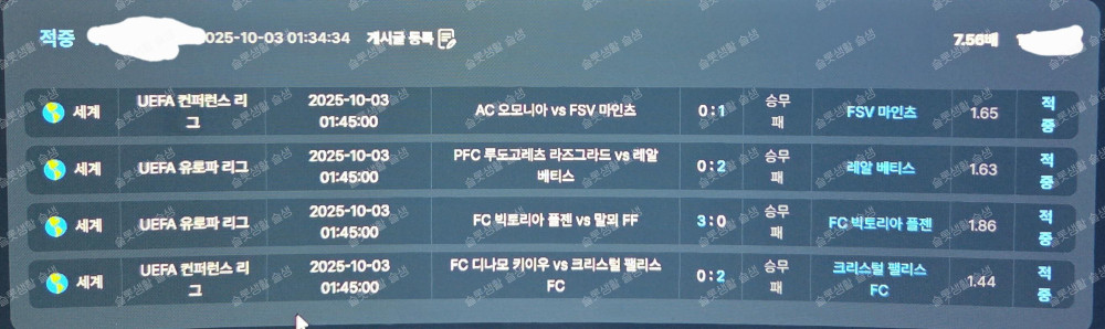 [후기게시판] 그니깐요..하..길이 남을 나만의 토토 전적이 될뻔햇는데..ㅋㅋㅋ2025-10-06
