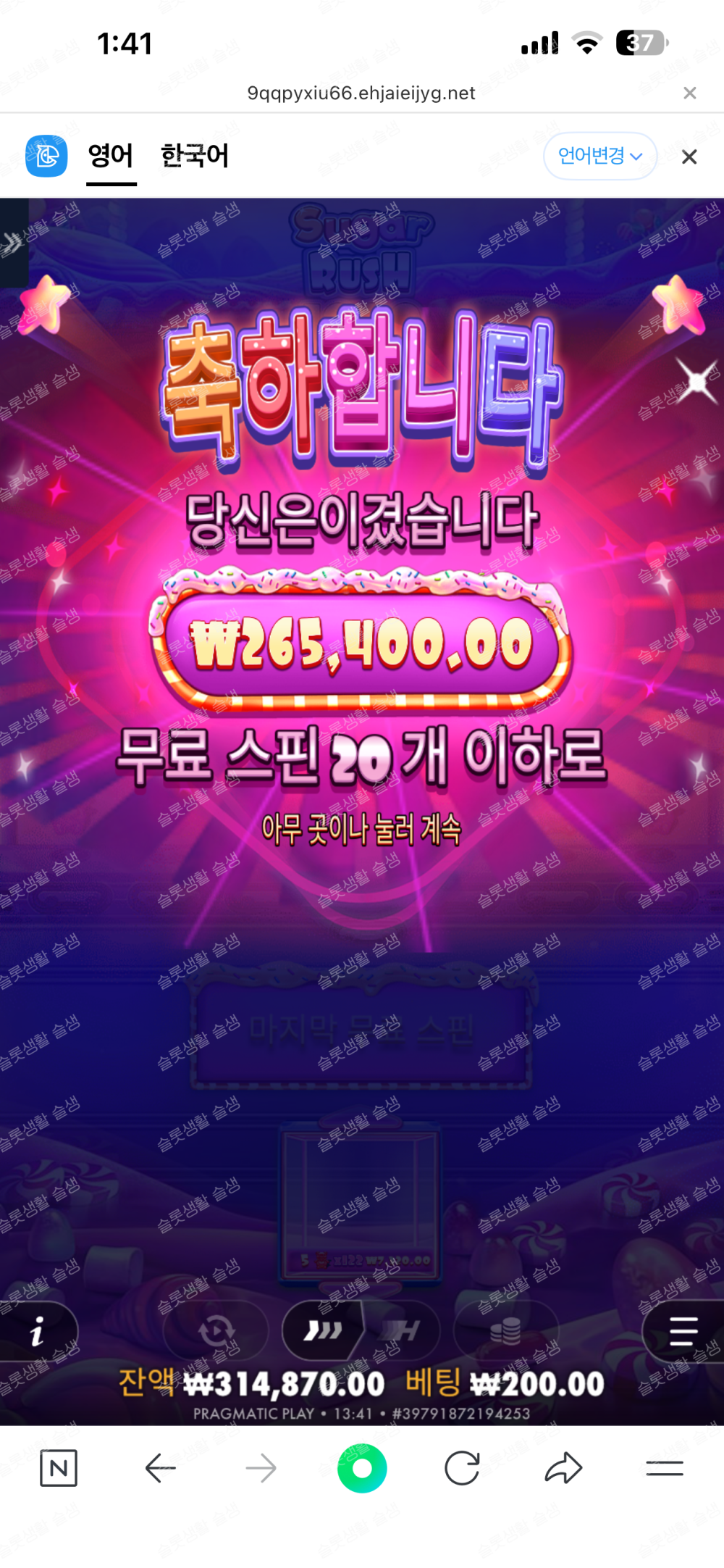 축하합니다. 행운의 포인트 37포인트를 획득하였습니다.