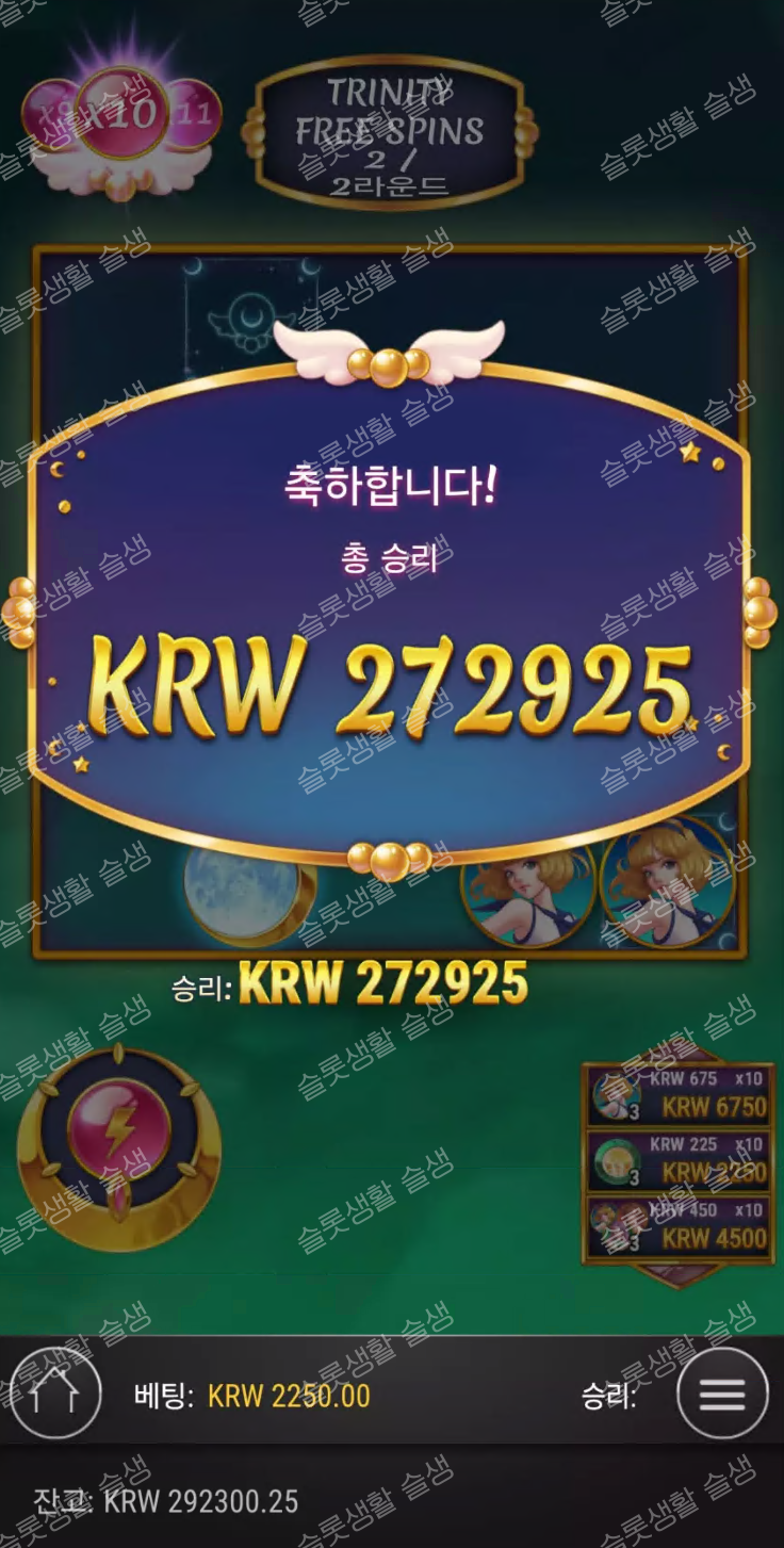 축하합니다. 행운의 포인트 276포인트를 획득하였습니다.