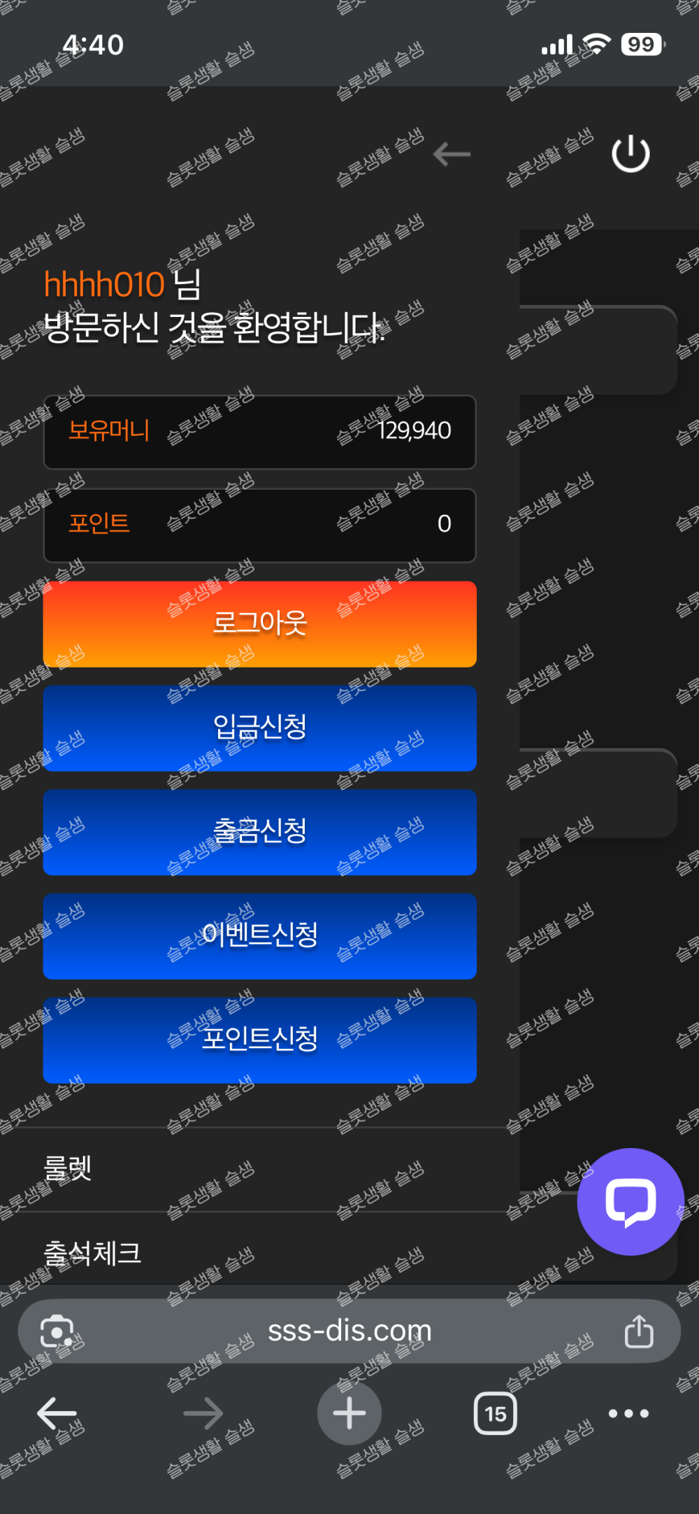 슬생에서 이벤트 진행하여