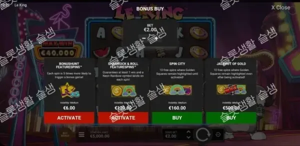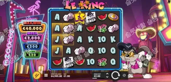 스핀 시티의 밤을 지배하며 20,000배의 황금을 거머쥘 새로운 왕(Le King)이 되어보세요!"
