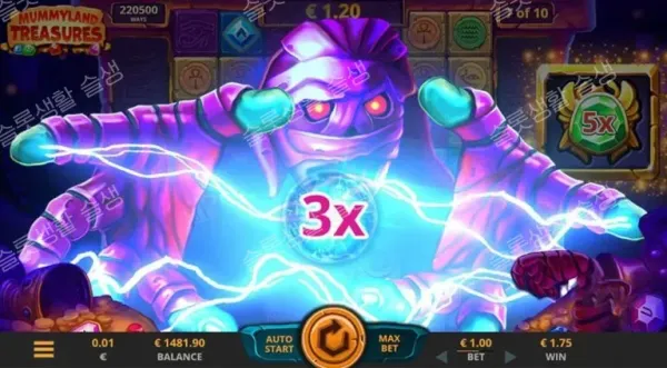 돌 블록을 부수며 그리드를 넓히는 시스템은 릴랙스 게이밍(Relax Gaming)의 인기작 '템플 텀블 메가웨이즈(Temple Tumble Megaways)'를 연상시킵니다. 그러나 머미랜드 트레저스는 단순한 웨이즈 증가에 그치지 않고, 파란색/노란색 번개를 통한 강제 폭발 기믹과 프리 스핀 중 무한 누적되는 멀티플라이어를 도입하여 게임의 폭발력과 고점(25,000배)을 한 차원 높였습니다.