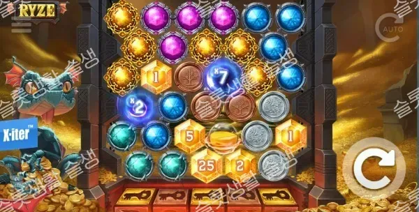 • 🪙 코인 병합: 화면에 배수가 적힌 오렌지색 코인 심볼들이 모여 당첨되면, 상금을 지급한 뒤 하나의 더 큰 가치를 지닌 코인으로 병합되어 다음 연쇄 반응을 준비합니다.