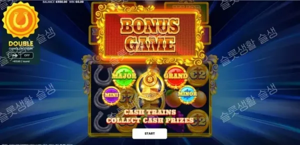 골든 코인 4개 이상과 캐시 트레인 1개가 동시에 안착하거나 무작위 확률로 보너스가 발동합니다. 3번의 리스핀 생명력(Life)이 주어지며, 동전이나 트레인이 등장하면 횟수가 리셋됩니다.