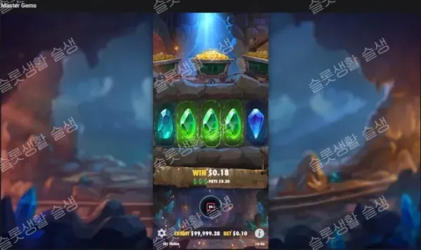 마스터 젬스는 복잡한 기믹과 스캐터 진입의 압박에 지친 플레이어들을 위한 가장 직관적이고 화끈한 광산 탐험입니다. 아무런 예열 과정 없이, 3번 릴에 황금 와일드가 떨어지는 그 순간 무조건 발동하는 '최대 100배 마인카트 멀티플라이어'의 도파민은 웬만한 슬롯의 프리 스핀을 능가합니다.