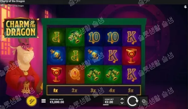 깊고 짙은 녹색과 영롱한 보라색, 빛나는 황금색이 어우러져 동양 최고위층의 비밀 금고에 들어온 듯한 시각적 사치를 제공합니다. 화면 측면에는 왕의 예복을 입고 열쇠를 쥔 귀족적인 카툰 드래곤이 플레이어의 스핀을 지켜보고 있습니다. 금화 주머니, 화려한 술잔, 황금 단지 등 정교하게 디자인된 기호들과 어우러지는 아시아풍의 신비로운 사운드트랙은 고배당 슬롯 특유의 긴장감을 우아하게 포장해 줍니다.
