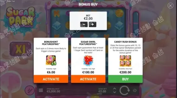 베이스 게임의 밋밋함을 피하고 싶다면, 베팅액 3배의 보너스 헌트 기능을 켜두어 스캐터 안착 확률을 높이거나, 과감하게 100배의 캔디 러시 보너스 구매를 통해 배수가 영구적으로 100x까지 누적되는 달콤한 폭발력을 즉시 경험해 보시길 권장합니다.