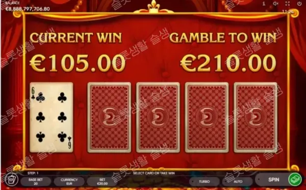리스크 게임: 당첨금을 걸고 딜러보다 높은 카드를 뽑아 상금을 두 배로 늘리는 갬블 기능이 존재합니다. (최대 10회 가능)